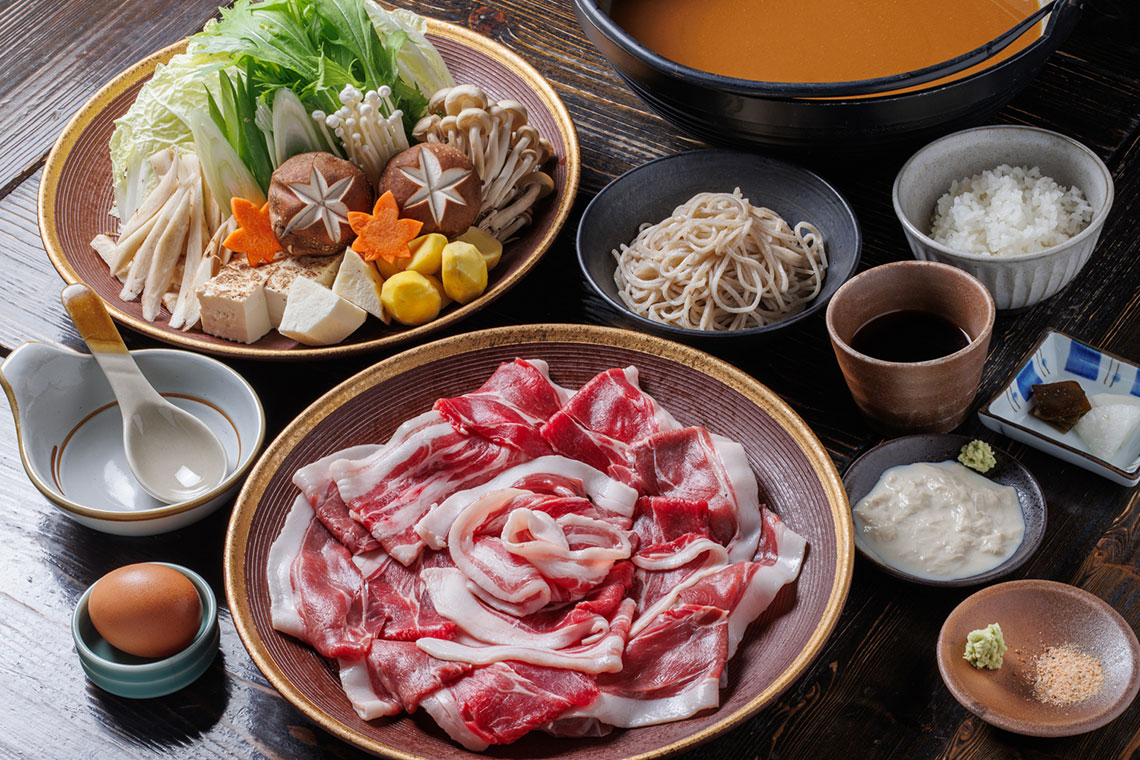 丹波篠山近又監修の出汁に、上質な脂の甘みとコラーゲンたっぷりの猪肉と、篠山の恵みがたっぷり詰まった地元の野菜も加えた特別なぼたん鍋をご堪能いただけます。